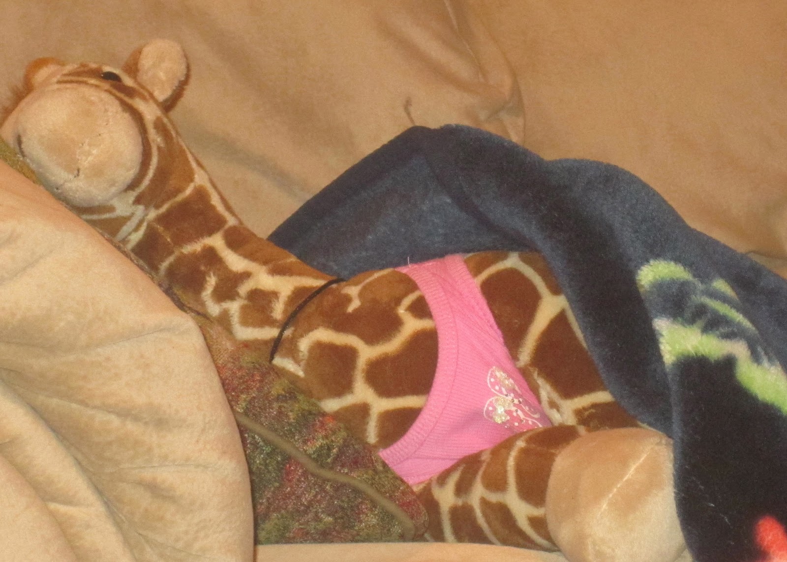* mauryn creating a bed and snuggling up with her stuffed animals to share a story